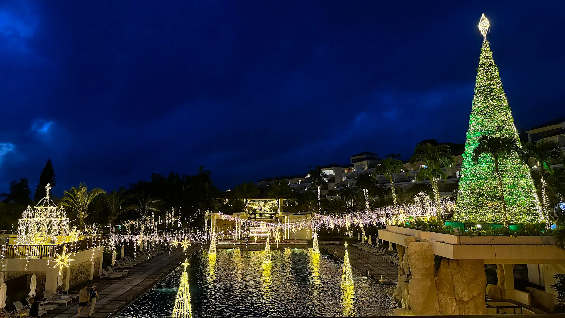 広大なリゾートを舞台に、多くの光が幻想的な雰囲気を演出して、訪れるすべての人を温かく包みます。